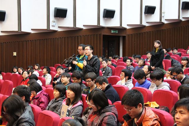在互动交流环节,在场听众争先恐后地踊跃提问。一位听众问蔡院士:“在我的朋友、同事及学生中,立志于钻研科学的人越来越少,面对现实的诱惑容易产生困惑。如何改变这种状况?”蔡院士意味深长地说:“我们可以选择自己的方向,但不能忘了自己是中国人。当今社会,只有国家兴旺强盛,我们才能得到幸福安定的生活;义无返顾的投身科学事业,将使我们在知识、智慧、思辩、创造的交织中,享受那无尽美妙与自豪的人生。”蔡院士精彩的回答让现场掌声如雷鸣般响起,经久不息。他寄语听众:“走进科学,发明技术,创建工程,回答世纪难题,制胜世纪挑战。”他说:“时间与空间正上演着神奇无比、奥妙无穷的精彩演变,正等待着我们去揭秘,去驾驭,去为我所用,我们的终极目标是:人类在宇宙中永恒生息,是当代永恒的使命。”
