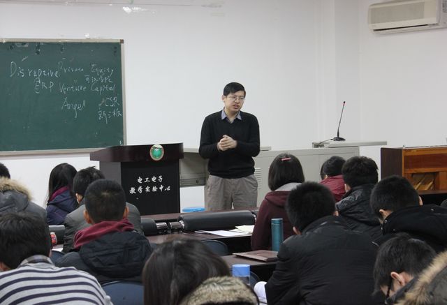 12月8日,信息与电子学院大学生创新创业人才培养基地2012-2013学年第二期培训课程在4号楼244顺利举行。本期培训课程的主讲嘉宾是PE.VC公司首席运营官朱成龙老师。朱老师是北京大学光华管理学院毕业硕士,曾长期就职于世界500强企业,全球领先的管理咨询、信息技术及外包服务公司——埃森哲(Accenture)公司,在电子信息工程领域拥有丰富项目管理经验,目前正致力于自主创业和风险投资方面的工作及创新赛场活动的管理。信息与电子学院团委老师蒋荣堃和创新创业人才培养基地全体学员参加了培训。