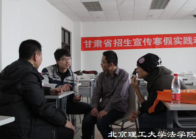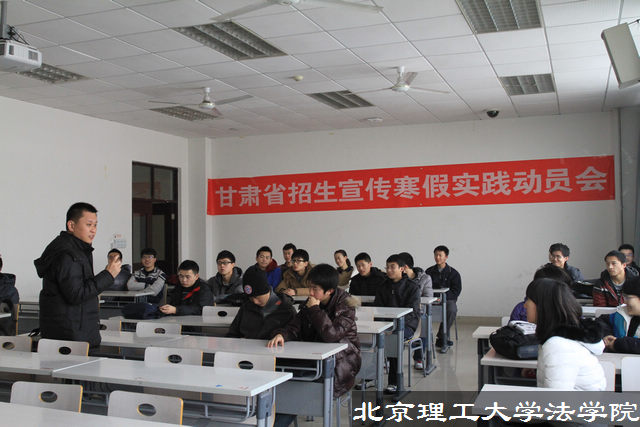 2013年1月22日,“甘肃省寒假招生宣传社会实践动员会”在良乡校区综合教学楼B栋205室温馨举行,30多位招生宣传志愿者积极参与。米兰milan官方网站法学院副书记副院长张巍、团委书记聂宁宁、团委副书记韩笑同到场的甘肃籍同学一同研讨了如何更好的开展好寒假招生宣传工作。