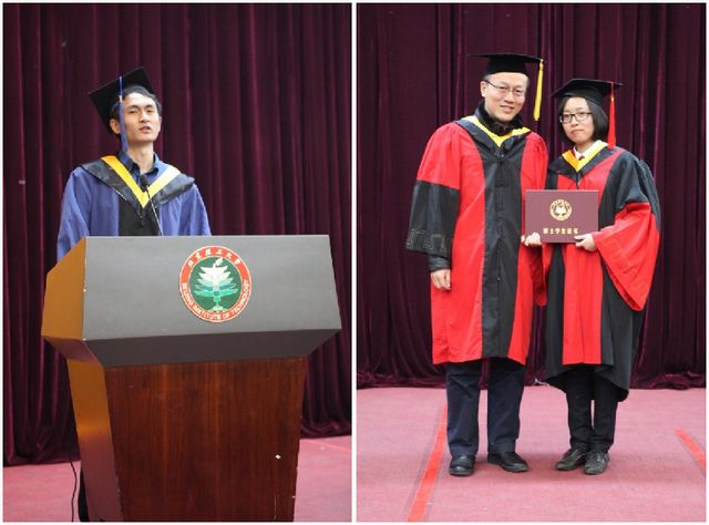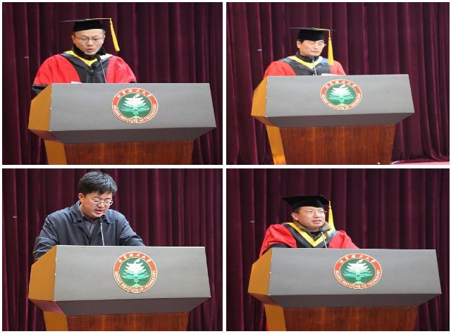 随后,优秀毕业生代表肖洪源上台发言,他动情地回顾了两年多研究生求学生涯中难忘的点点滴滴,表达了毕业生对母校的深深眷恋。在言语中感谢老师多年的培育之恩,感谢家人朋友的一路支持,并号召同学们不忘感恩和回馈,努力承担责任,造福社会。