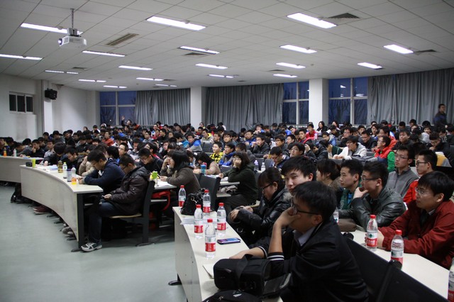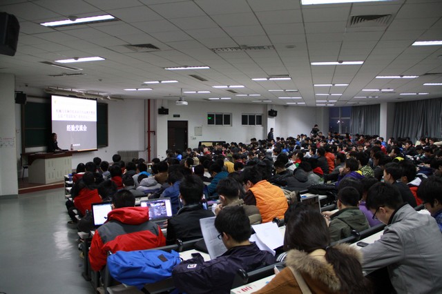 随后,特别邀请到的五位2013届本科毕业生分别从保研、求职、科技创新、学习生活以及留学等五个方面与在场同学进行交流,毕业生们从自身经历出发,向学弟学妹们分享了自己宝贵的经验,得到了全场雷鸣般的阵阵掌声。最后,由刘瑞老师向同学们讲解了关于国际交流项目的具体事宜,特别是学院交流人数越来越多的德国项目。