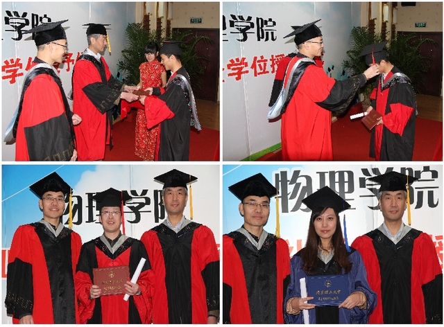 最后,物理学院邹建教授、欧阳吉庭教授为毕业生授予了学位并颁发毕业证书。