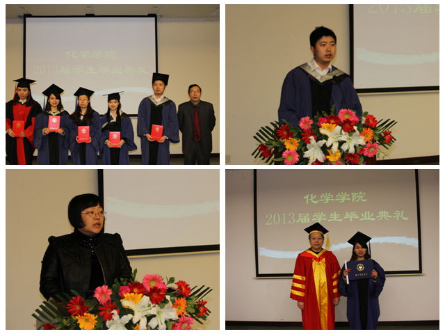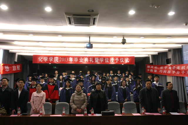 3月26日,化学学院2013届春季研究生毕业典礼暨学位授予仪式在研究生楼102报告厅隆重举行,学院全体在校院领导、部分教师、部分学生家属和全体毕业生出席典礼。