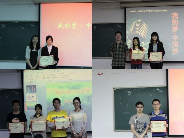 何为中国梦?亿万中国人心中有亿万种解读。5月14日,信息电子学院共产主义学习实践会主办“我的梦·中国梦”主题演讲比赛,让同学们讲述、诠释、描绘心中的“中国梦”。信息与电子学院团委书记刘渊、2010级辅导员刘娜、团委教师韩融、蒋荣堃担任演讲比赛评委。