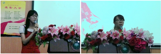 随后,获奖代表作事迹报告和经验分享。学优之星代表郭婧同学精通四门外语,并在各大语言竞赛中获奖,她和同学们分享了如何学好外语;志愿之星代表“护航者协会”在帮扶弱势儿童精神成长方面做出了有益的尝试,并获中国青少年基金会项目支持;实践之星代表团队,介绍了做好假期社会实践的心得体会。代表们精心准备,娓娓道来,让台下的同学们受益匪浅。