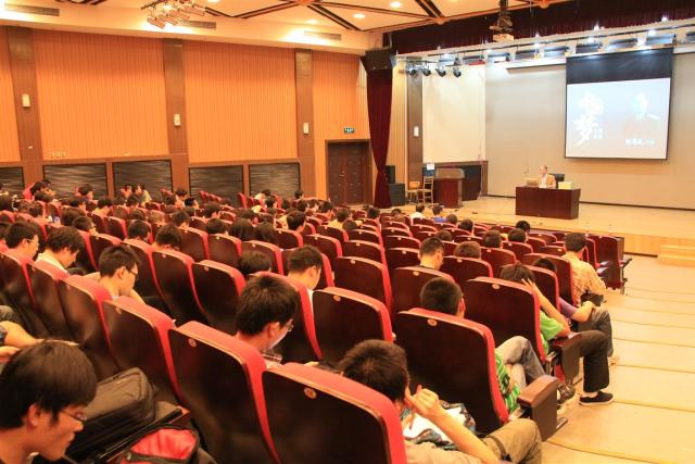 中国梦与我们每个人息息相关。讲座开始后,陈将军用铿锵有力的话音,主要结合自身亲身经历的故事,向在场师生诠释中国梦的历史背景与现实意义。中国梦不是抽象的,而是具体的,每个人心中都应捍卫自己内心的中国梦。陈将军在讲座中尤其强调了终生学习的重要性,并通过讲述自己曾任中国军事体育代表团团长之时,利用自学的英语为国家挽回尊严一事,深刻地为大家演绎了自我提高、不屈不挠的重要意义。少年强,则国强。我们应不断站在新的起点上严格要求自己,为实现中华民族伟大复兴而贡献自己毕生的力量。
