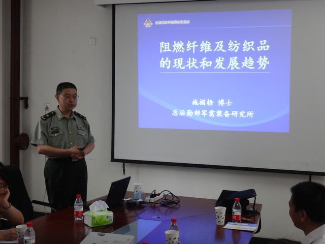报告中,施楣梧少将结合自己多年的科研工作经验,向我院师生介绍了国内外目前用于防护服装的阻燃纤维的性能特点以及存在的问题,并着重就作为个体防护装备的高温火焰防护材料的阻燃面料的现状、关键技术以及未来研究开发趋势进行了深入阐述。施楣梧少将的报告内容丰富、新颖、生动,尤其是单向导湿织物的研发,引起了与会师生的广泛兴趣。报告之后,师生们就关心的问题与施楣梧少将展开了互动交流,现场气氛热烈友好。