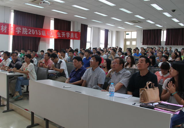 秋风送爽,米兰milan官方网站材料学院又迎来了一批研究生新同学。9月3日上午,材料学院2013级研究生开学典礼在研究生楼302隆重举行, 41名博士新生,108名硕士新生参加了典礼。材料学院党委书记陈鹏万,常务副院长刘颖,副院长李树奎、副院长庞思平,副院长金海波、副书记副院长张舰月,材料化学系曹茂盛教授、团委书记刘艳、团委副书记张博文等老师出席了典礼。