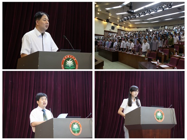 制造工程系刘检华教授在代表全院教师发言中,分享了作为科研人员、研究生导师的几点体会:希望研究生新生尽快实现学习方式的转变,从被动接受知识快速转变到能够针对导师布置的科研课题,主动查阅并学习知识;希望研究生们要努力苦干,学会巧干,努力培养自身科研素质;希望研究生们要注重自身综合素质的培养,不断提高发现问题和独立解决问题的能力,不断提高沟通协调能力和文字表达能力等。车辆工程系新生周佳代表新入学研究生发言,表示一定会扎实学习,积累经验,为专业学习打下夯实基础;明确目标,博采众长,做名符其实的高素质人才;提高能力,善于创新,为祖国科研事业献青春;注重交流,加强沟通,做更高水平的研究。