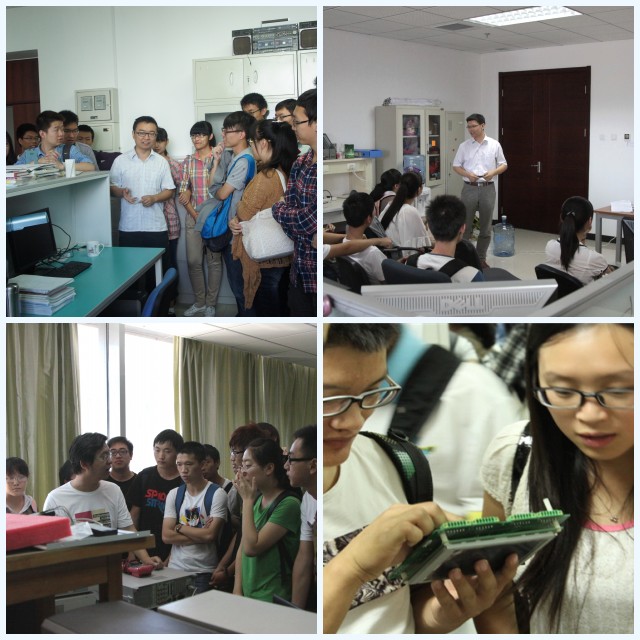 随后,在高年级志愿者的陪伴下,2012级的全体学生分批参观了相关实验室。各实验室的指导老师耐心细致地介绍了实验室的具体情况、实验器材的用途和操作技巧,同时也就同学们关心的问题进行了细致的解答。