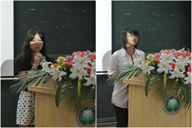 随后,教师代表13级日语系班主任张元卉老师讲话。她在发言中提到了“多元”和“青春”两个关键词。指出外语的学习有助于我们这个时代多元文化的繁荣,翻译水平的高低并不在于他对语法掌握得多么精准,而在于他对母体文化的理解和体认。她还引用微博上的话,指出“一切皆有可能,唯有光阴留不住”,以此勉励大家珍惜青春,把握当下,让年轻的生活过得充实而又美好。
