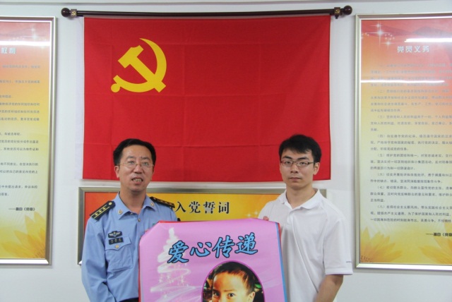 交流会后,研究生大队学员们带领全体来访师生参观了学员宿舍和大队荣誉室。张忱老师代表自动化学院向第十六大队赠送了学生精心制作的志愿服务宣传海报。