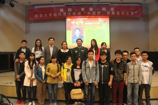 郭老师的讲座从社会主义道路与中华民族救亡自强的有机统一、祖国繁荣富强与各族人民幸福生活的有机统一、全面建成小康社会征程上富国与强军的有机统一三个方面对“中国梦”进行了深入的阐述,他指出“‘中国梦’,就是坚定不移走中国特色社会主义道路,弘扬中国精神,凝聚中国力量,实现中华民族伟大复兴,实现国家富强、民族振兴、人民幸福。”报告观点鲜明,内容丰富,逻辑清晰,讲解透彻,对师生们全面认识和理解中国梦的深刻内涵有着很强的指导意义。