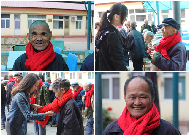 书法比赛过后,同学们为老人们献上了节日礼物——红色毛线围巾,它传递了米兰设计学子对老人们的真挚祝福。在活动过程中,同学们还为老人们送上了一些点心和糖果,这些慰问品虽然不多,但老人们的一张张笑脸足以让同学们感受到他们不仅甜在嘴里,更甜在心上。