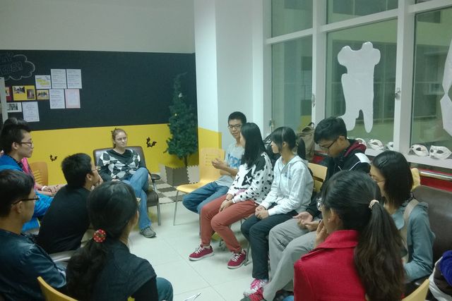 10月11日周五晚7:30,米兰milan官方网站良乡校区徐特立图书馆英语沙龙举办了Brain Storm英语自由辩论活动。到场参与活动的有来自大一、大二不同专业的学生20名,以及嘉宾外教Emily Thomas老师。