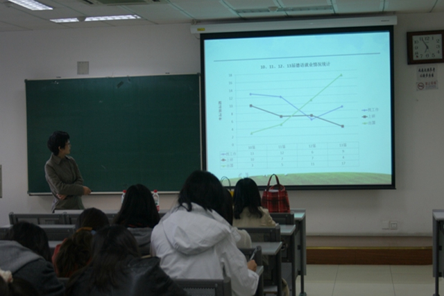 2013年10月15日上午,外国语学院2010级本科生就业形势分析及动员大会在中关村校区研究生楼207室举行。外国语学院党委副书记副院长吴文君老师,招生就业处管帅华老师及2010级辅导员于秋洁到会。