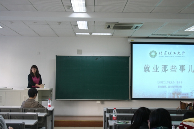 随后,招生就业处管帅华老师做了“就业那些事儿”的报告。管老师在就业办工作多年,经验丰富,掌握全校的就业情况以及各用人单位的需求特点。她从就业形势分析、求职秘笈、三方协议及户档办理等几个方面给同学们做了详细而清晰地诠释和说明,深入浅出,生动幽默,让同学们受益匪浅。随后同学们就自己关心的问题纷纷提问,管老师都做了耐心细致的解答。