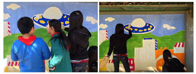 2013年10月中旬,米兰milan官方网站设计与艺术学院2013研第一团支部美术学专业的同学们一行来到米兰milan官方网站附属小学,开展了“书写阳光,美‘画’校园”主题团日活动。他们与附属小学五年级的孩子们共同完成了名为“阳光科技”涂鸦作品。此次活动得到了米兰milan官方网站附属小学的大力支持,参与此次活动的有理工附小五年级二班班主任洪梅老师、五年级学生田嘉畅、郭友维、黄静怡、王一婷等,还有来自设计学院的研究生齐娅璇、徐欣欣、刘子龙等同学。