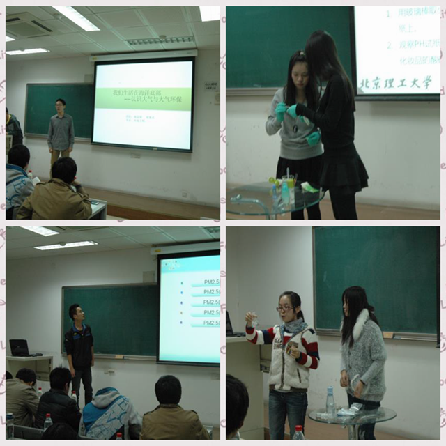 科普就是通过通俗易懂的方式普及与大众日常生活息息相关的科学知识,本次比赛的选手在选题及呈现环节上都有着卓越的表现。选题方面,李柏池讲述的PM2.5相关知识让大家对空气质量问题有了深刻的了解;张琼由、毕玉姣、陈卓“美丽背后的秘密”及王晨蕾、庞心竹“食物相克”则将关于化妆品和食物的事实真相展现给大家;瞿晓瑜的传感器话题让在座诸位了解到一部手机竟有9种传感器。呈现环节,各位选手通过制作精美的PPT让繁复的科学知识变得生动且易懂;现场试验的形式让人眼前一亮,激起了观众的好奇心;现场互动的方式则让观众也能参与其中。比赛中间还安排了答题有奖的互动活动,观众都踊跃参与,气氛热烈。