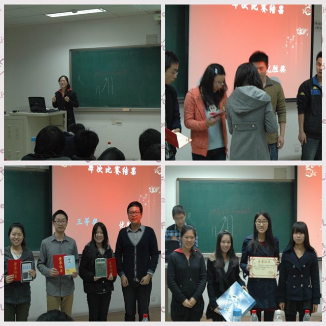 经过两个小时的激烈角逐,比赛环节顺利结束。综合评审团打分以及现场观众的投票分数,最终一、二、三等奖及优胜奖各有归属。嘉宾评委、殷跃强、姚怀瑾及李明蔚为获奖选手颁奖。获一、二、三等奖的同学将被推举参加学校比赛。