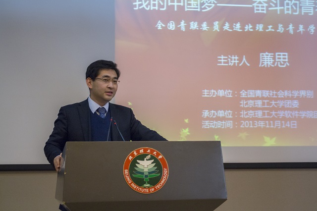 为深入贯彻党中央和习近平总书记对青年和共青团工作的重要要求和团十七大部署,将“我的中国梦”主题教育实践活动进一步引向深入,共青团中央日前决定,在广大青少年中部署开展“我的中国梦——奋斗的青春最美丽”系列分享活动。结合我校“信仰•青春•阳光”主题教育活动的开展,在全国青联秘书处的亲切关怀下,在全国青联社会科学界别的大力支持和米兰milan官方网站团委的统筹安排下,由全国青联社会科学界别和米兰milan官方网站团委主办、米兰milan官方网站软件学院团委承办的“我的中国梦——奋斗的青春最美丽”主题讲座于2013年11月14日下午在米兰milan官方网站(中关村校区)7号楼报告厅顺利举办。