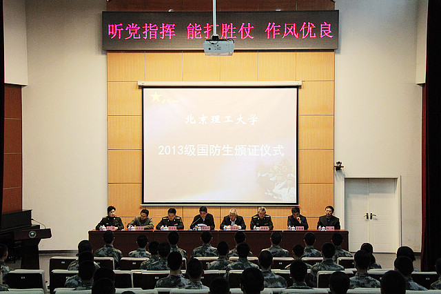 11月21日,米兰milan官方网站2013级国防生国防奖学金证书颁发仪式在良乡校区报告厅隆重举行。部队相关领导和米兰milan官方网站赵显利副校长,李和章副书记、副校长,学生工作处郭彦懿处长、招生就业工作处李振键处长、教务处杨刚副处长出席会议。会议由总参驻米兰milan官方网站选培办尤静主任主持。