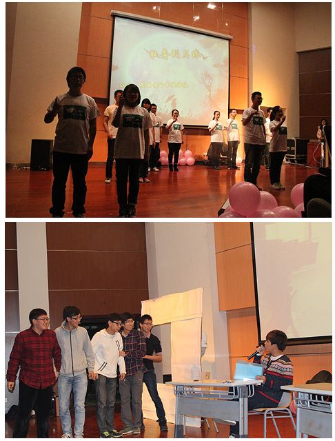 大幕缓缓拉开,第一个节目《私奔到月球》,由绿风志愿者协会手语部为观众倾情奉上,志愿者们细腻的表演引来观众阵阵掌声。绿风志愿者们还为大家带来了《手语》,《手语歌曲串烧》,《歌舞青春》等节目,温馨的手语表演让在场的观众感触颇深。除了手语表演之外,武协的《舞动》扣人心弦,令人振奋;龙艺社的乐器演奏《月夜河流》带领大家感受中国古典民乐的魅力;校话剧团带来了话剧《静歌》,京工话剧团带来了朗诵《你必须聋了才明白》,还有粤语文化交流社带来的歌曲《爱的太迟》以及乡琴带来的歌曲《If you want me》。特别值得一提的是,我们特地邀请北京工商大学手语部来现场演出,他们表演的是手语节目《傻笑》。