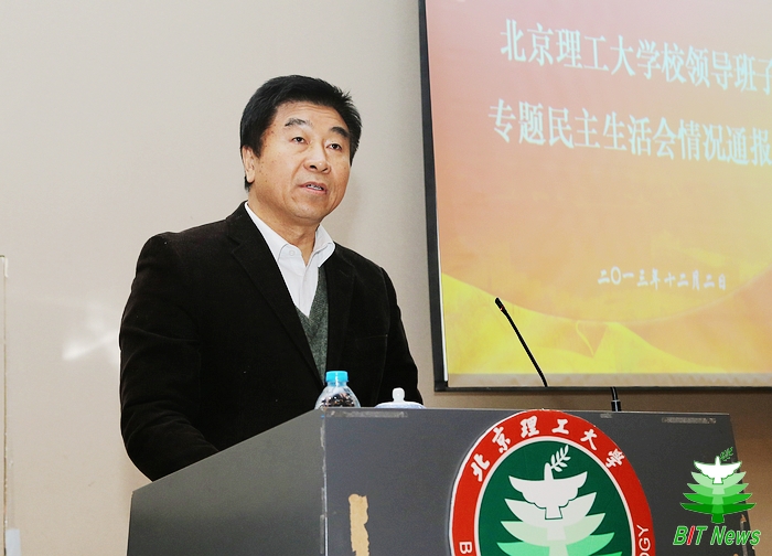 郭大成介绍了11月22日党委领导班子召开专题民主生活会的会前准备情况和会议情况。按照中央统一部署,学校党委领导班子从教育实践活动开展以来,坚持学习贯穿始终、广泛征求师生意见、集中查摆问题、认真撰写材料、深入开展谈心活动,为专题民主生活会的召开进行了充分准备。在为期一整天的民主生活会上,郭大成代表学校党委领导班子进行了对照检查,每位班子成员根据班子对照检查材料认领了自己应负责的有关问题,每位班子同志作了个人对照检查并开展了自我批评,各班子成员之间开展了认真的相互批评,相互提出批评意见建议141条,体现了较强的党性和政治责任心。