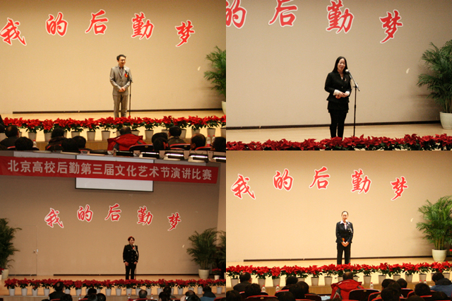 为加强北京市高校后勤思想文化建设,创建和谐后勤团队,展现后勤人对后勤服务工作的不懈追求和无私奉献精神。2013年11月27日下午,由北京市教委学校后勤处、高校后勤研究会思政专委会主办,我校后勤集团承办的“我的后勤梦”北京高校后勤第三届文化艺术节演讲比赛在中关村校区七号楼报告厅举行。