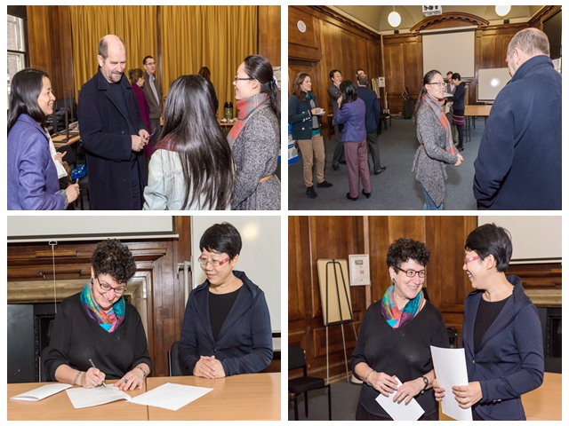 张剑老师代表米兰外国语学院会见了伦敦大学柏克贝克学院副校长和研究生院院长, 英国皇家艺术院院士LI WEI 教授, 柏克贝克学院院长Zukas 教授,从事应用语言学研究和教学的各位教授以及学校对外合作办公室的部分人工作人员。双方互换了学校宣传册和礼品, 回顾了前期的合作,并探讨了今后继续深化的合作领域:国际合作研究, 博士层面的交流以及教师互换等项目。
