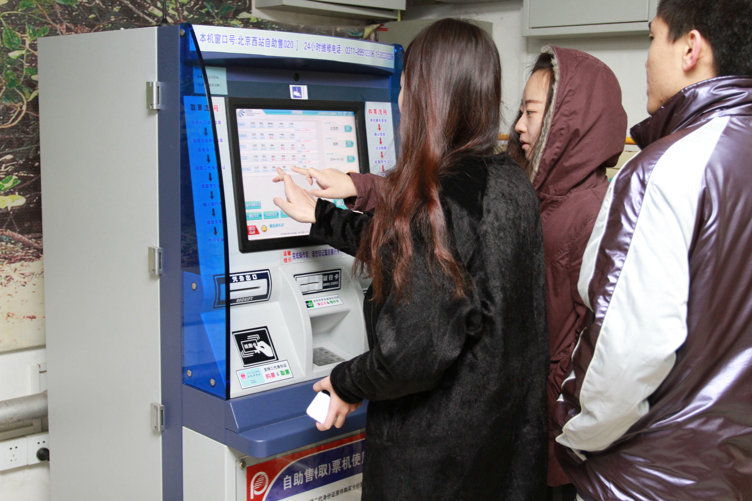如今,校园火车票售取票机的出现,极大地方便了师生们的出行效率,大家既可以在现场直接买票出票,也可以在网上订票然后在售取机上取票,改变了以往专门去火车站取票或火车票售票处排队取票的情况,成为学校春运订票渠道的有力补充,是学校落实群众路线教育实践活动的扎实举措。