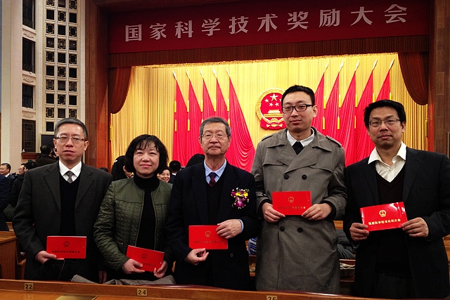 中共中央、国务院1月10日上午在人民大会堂隆重举行国家科学技术奖励大会。党和国家领导人习近平、李克强、刘云山、张高丽出席大会并为获奖代表颁奖。我校出版社出版的《基因的故事:解读生命的密码》(“芦笛曲丛书”之一)在此次评选中获“2013年度国家科学技术进步奖二等奖”,项目完成人陈润生、刘夙、范春萍、樊潞平、尹传红五人出席了颁奖大会。