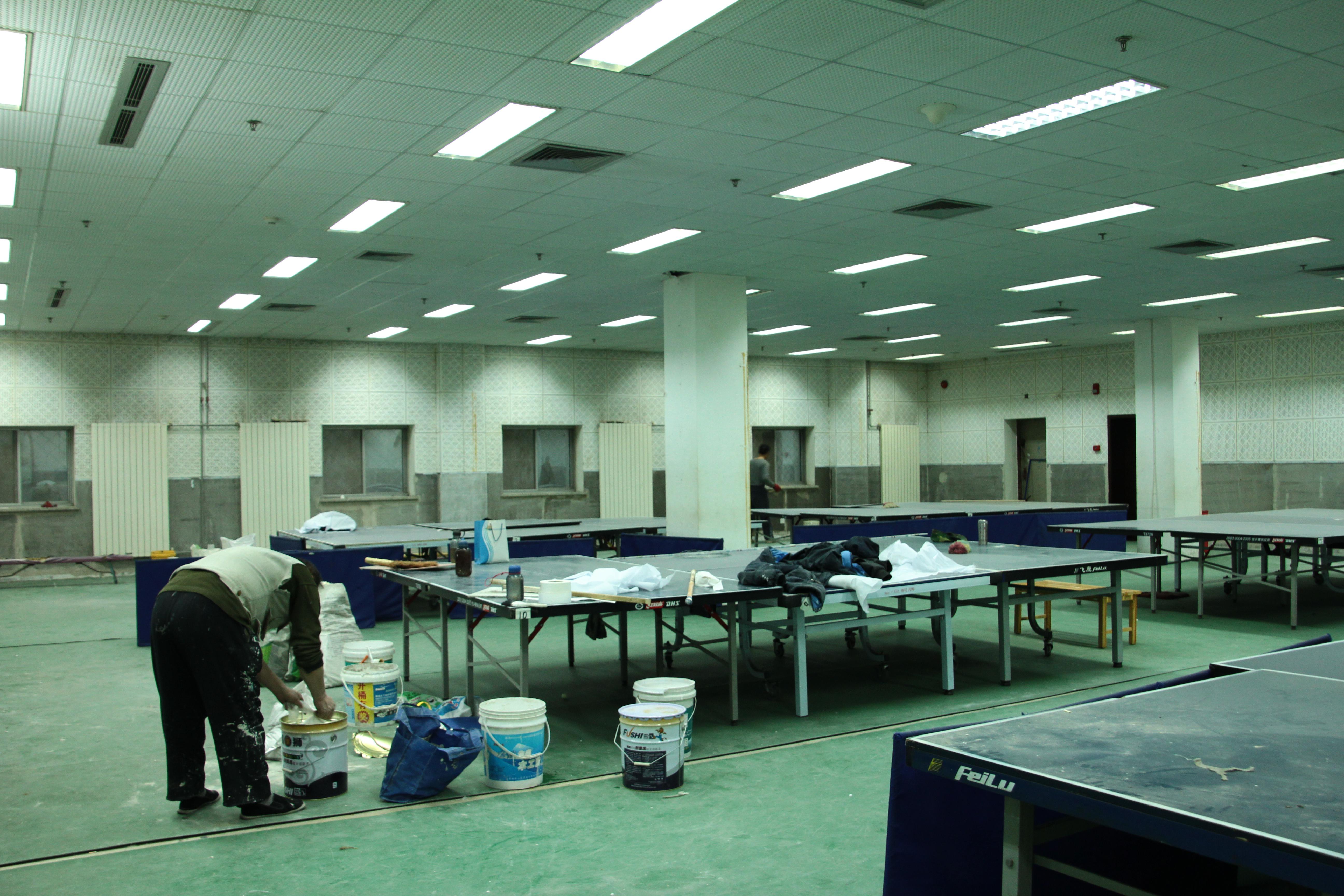 位于体育馆地下一层的乒乓球室因空间有限,通风条件和环境一直不是很好,广大师生也多次就此提出意见,体育部积极听取大家的意见,即查即改,本学期已基本完成对乒乓球室的整改工作。目前,通风改造已经完成,墙体维修还有一周就会完工,现在正在施工阶段。在体育部韩书记的带领下,记者来到乒乓球室。据韩书记介绍,乒乓球室原来是奥运会期间比赛场馆的一个隔断,后来把隔断拆掉后变成了乒乓球室,墙体已全部损坏,现在已基本维修完成。通风改造是这次乒乓球室整改的另一项重点。在此之前,乒乓球室的窗户不敢打开,因为窗户外没有防护,存在安全隐患。现在在窗户外面加了一道防护门,同时把纱窗和窗户进行了改造,这样便可以全天把窗户打开通风,实现了空气对流,室内空气质量得到了极大的改善。此次整改得到了广大师生的一致好评,纷纷表示室内空气的改善极大的提高了大家去乒乓球馆锻炼的积极性。