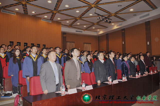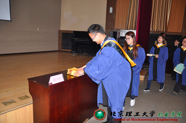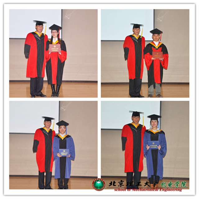 焦清介院长代表学院致辞,他对即将毕业的研究生表示祝贺,并对即将踏上人生新起点的毕业生们表达了美好的祝愿,同时对他们提出三点希望,希望他们做一个拥有崇高理想的人、一个用科研精神奉献社会的人、一个勇于担当的人。力学专业朱聪同学代表毕业生发言,他以诙谐幽默的语言叙述了研究生的工作、生活以及学习,将情感深深融入到生活、科研中的点点滴滴。平凡中带着激情,有失落也有兴奋,有挫折也有成功。最后他代表即将毕业的机电学子表达了对恩师的感谢以及衷心的祝愿。机电学院副院长韩峰教授宣读了米兰milan官方网站学位授予决定。机电学院党委书记栗苹教授宣读了2014年机电学院的北京市优秀毕业生、米兰milan官方网站优秀毕业生名单。由机电学院张庆明老师和门建兵老师为获得北京市优秀毕业生荣誉称号的毕业生颁发了荣誉证书,由机电学院王亚斌老师和陈军老师为获得米兰milan官方网站优秀毕业生荣誉称号的毕业生颁发了荣誉证书,肯定了他们在研究生期间的优秀表现。