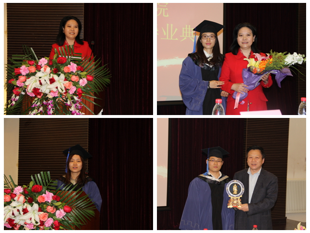 李晖教授作为教师代表,向即将告别校园、带着坚守着的梦想继续前行的全体毕业生分享三点感悟并接受学生代表献花,她勉励毕业生:一、要坚守理想和独立人格,不要抱怨,脚踏实地,做真实的自己,趁年轻的时候,为心中的那些梦想勇敢地去搏击;二、要坚守诚信和承担责任,以诚信和责任感赢得他人的理解和支持,营造风清气正的社会环境,从而更好地发挥才干、成就事业;三、天道酬勤,顽强开拓,凭着坚韧的毅力和坚定的信念坚持下去。