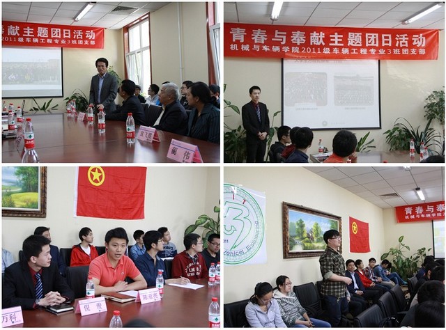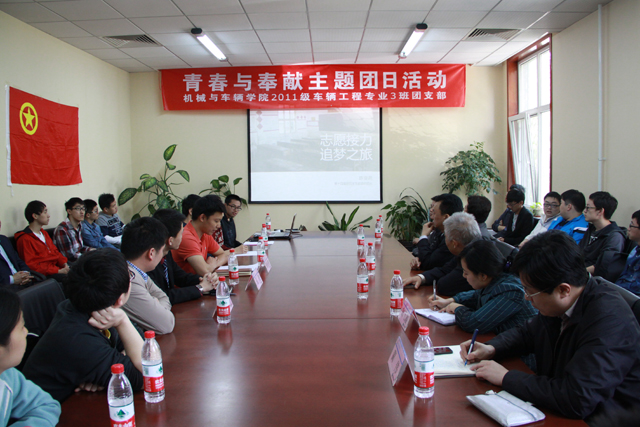 2014年3月,校团委启动了“奋斗的青春最美丽”主题团日活动,广大团支部积极策划和组织实施,在活动中传播正能量,大力弘扬社会主义核心价值观。2011级车辆工程专业3班团支部策划了“青春与奉献”主题团日活动,邀请优秀的学长与支部成员共同分享如何在大学中绽放青春、如何在奉献中服务社会。