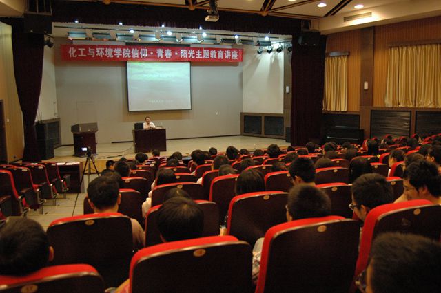 6月9日晚,化工与环境学院“信仰﹒青春﹒阳光”主题教育讲座在七号楼报告厅成功举办,中国人民大学马克思主义学院王向明教授受邀为学院百余名党员及入党积极分子做了题为“我们的旗帜是共产主义”的主题讲座。校团委副书记苟曼莉、化工与环境学院副书记、副院长周明宇出席了活动,讲座由周明宇主持。