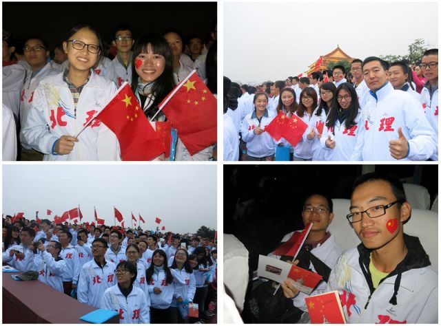 当历史的车轮在曲折的进程中留下深浅不一的辙痕,时间的指针也缓缓指向了2014年10月1日。这一天,是我们的伟大祖国六十五周年华诞,是值得亿万中华儿女欢腾庆祝的日子。六十五年前,老一辈无产阶级革命家们在天安门城楼上向全世界庄严宣告中华人民共和国成立,升起了第一面五星红旗,揭开了中国历史的新篇章;六十五年后的今天,百余名北理学子与首都各界人民一道,怀着崇敬激动的心情汇聚天安门广场,观看升国旗仪式,共同为伟大的祖国母亲庆生!