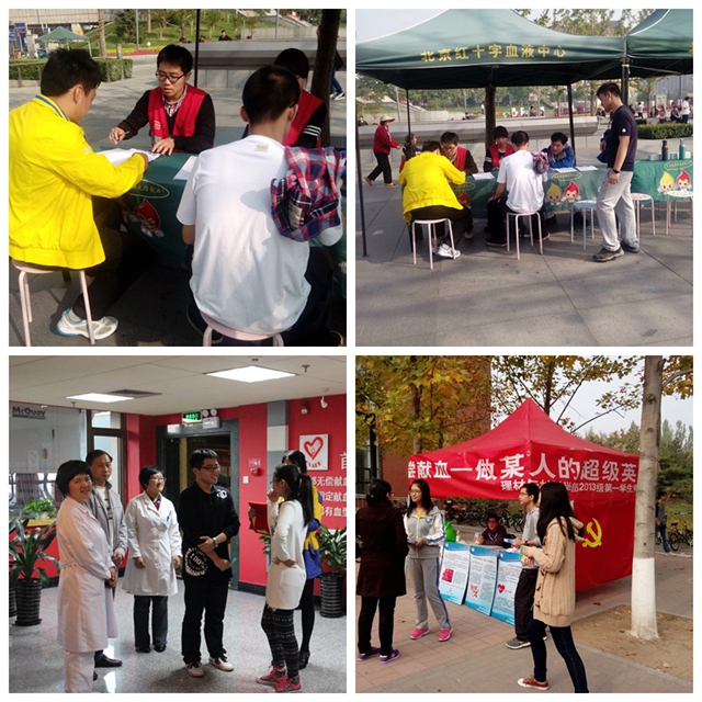 2014年8月-10月期间,我支部成员前往北京市红十字血液中心、北京西客站献血方舱、北京西单献血屋等地进行志愿服务,服务内容包括献血前期准备服务、成分献血服务、热血接线员等,先后参与志愿服务的党员、积极分子达48人次,服务时长累计达270小时。志愿服务期间,党员、积极分子们时刻保持高度热情,用自己的贴心服务为献血人群送上温暖和关爱。