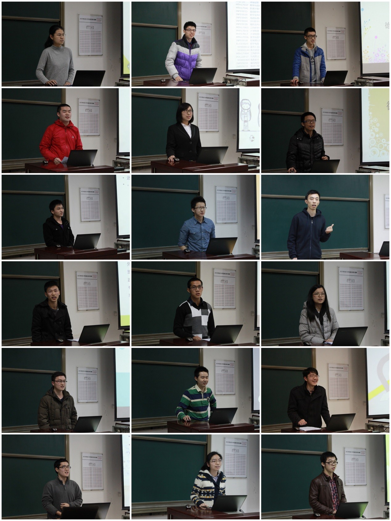 在主持人蒋荣堃老师介绍答辩双选会的规则之后,18名2011级成绩优异、事迹突出、品学兼优的“德育小导师”候选人依次上台进行答辩展示。保研至中科院的牛杰用四种颜色描绘了自己丰富多彩的大学生活,并以自己参与国际志愿活动的经历感染了在场同学;来自本硕博班的蔡津剑结合自己的经验鼓励大家在大学加强体育锻炼,努力成为一名“强壮的学霸”;张旭同学讲述了自己两年参加电子设计竞赛经历,告诫大家即使遇到挫折也要坚持;作为国防生的邓寿云讲述了自己的奋斗历程以及保研至国防科技大学的经历,赢得了当晚最热烈的掌声;来自微电子国际班的唐立行用一段富有专业特色的C代码形式与大家分享了大学里的收获和感悟……18位候选人精彩纷呈的答辩展示引发了在场2014级同学的赞叹和思考,让他们对自己未来的大学之路有了更加明确的目标。