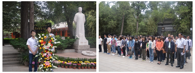 活动伊始,由学生代表为李大钊烈士敬献花篮。朵朵白花,象征着烈士心灵的纯洁无瑕,象征着烈士崇高的品质和无私的精神,寄托着师生们深深的哀思,代表着后辈对李大钊烈士的无限敬仰。之后,全体师生在李大钊烈士的墓碑前沉重默哀,向他顽强不屈、坚持不懈、视死如归、尽忠报国的精神致敬。