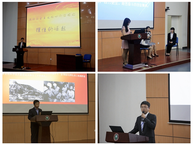 基础教育学院机械与运载学部求是队以当下的社会热点“社会主义文艺”为话题切入,对当下文艺界出现的一些非理性现象进行了分析与思考。软件学院新青年队从“西方民主不适合中国”这一题目入手,以执政党和反对党对三峡大坝建设和南水北调工程的态度矛盾为例,论证了西方的民主并不适合中国国情。基础教育学院理学与材料学部理智队从社会热点出发,通过对社会热点事件的分析,呼吁同学们关注社会热点,增强主人翁意识和责任感。基础教育学院信息一部求真队,从中国传统思路与西方思维的差别切入,论证了中国没有西方民主制度生长的土壤,社会主义制度才是最适合中国国情的制度。