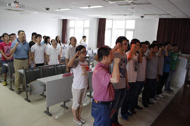 副院长冯金生带领全体预备党员面向党旗庄严宣誓,老党员重温誓词。铿锵有力的宣誓表达了全体党员为共产主义事业奋斗终生的庄严承诺。