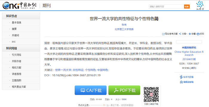 全文刊登于《中国高教研究》2016年第1期61-64页