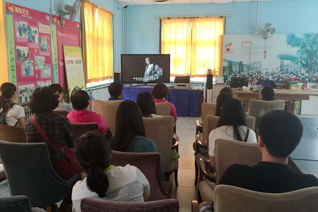 作为非政府的慈善组织,十多年来太阳村以无偿代养代教服刑人员未成年子女为己任,对服刑人员无人抚养的未成年子女开展特殊教育、心理辅导、权益保护及职业培训服务。太阳村孤儿院吴院长向志愿者们简单介绍了孤儿院的情况,目前孤儿院里有100多名孩子,最大的高中就读,最小的只有1岁。志愿者们的到来能够帮助孩子们在一个相对安定温馨的大家庭里得到教育,健康快乐地成长。志愿者们就社区矫正的相关法律问题和社会问题与孤儿院的工作人员展开了讨论。大家随后一同观看了太阳村的专题纪录片。