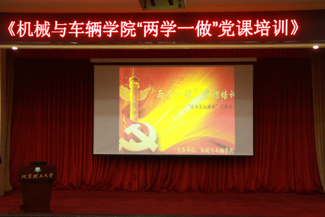 2016年10月27日晚,米兰milan官方网站机械与车辆学院“两学一做——学习践行长征精神”主题教育活动在中关村校区中心教学楼报告厅顺利举行。学院邀请了生命学院党委书记刘存福担任活动主讲人,机械与车辆学院党委书记左正兴、副书记副院长范文辉、学生工作办公室成员以及教工党员、学生党员等共计450余人参加了本次活动。