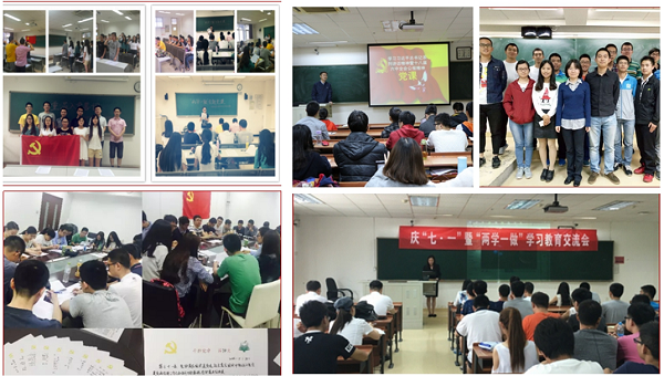 各党支部采取线上线下相结合的方式,开展了丰富的学习教育活动。学院开展了学习习近平总书记系列讲话精神暨十八届六中全会公报精神主题党课;2012级本科生党支部开展了“手抄党章100天”的活动,深化党员对党章的认识和理解。同时组织全体党员观看党员模范纪录片,以培养党员的先锋意识;2013级本科生党支部聆听了学院教师以“科研报国”为主题的讲座;2015级研究生党支部组织了党史党章知识竞赛和重温入党誓词活动,并建立学习交流微信群,分享微党课及学习心得。