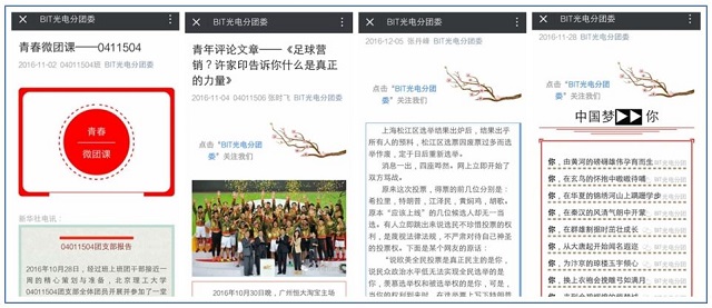 为贯彻落实中央党的群团工作会议精神,切实推进高校共青团深化改革,全面贯彻习近平总书记系列重要讲话特别是关于青年和共青团工作的重要指示精神,牢牢把握为实现中华民族伟大复兴中国梦而奋斗这一中国青年运动的时代主题,光电学院团委结合“树理想信念 聚青春活力 筑强国梦想”主题教育活动的相关要求,运用线上线下相结合的方式,推进“互联网+共青团”网络思想引领工作,扩大团员青年参与覆盖面,不断增强共青团的吸引力和凝聚力。
