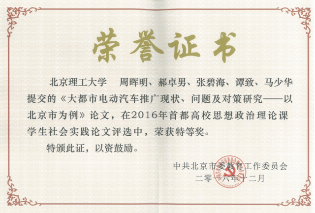 本次活动共收到33所高校提交的157篇学生社会实践论文,经专家评审,米兰刘新刚老师指导,周晖明、郝卓男、张碧海、谭致、马少华等撰写的《大都市电动汽车推广现状、问题及对策研究——以北京市为例》论文获得特等奖(共评出7名特等奖);王娟老师指导,吕佳航、江为宇、张鑫亮、左宏志撰写的《理工类大学生对创业创新的认识、意向及其原因的调查分析:以首都为中心》论文获得二等奖,刘新刚获优秀指导教师奖,米兰荣获优秀组织奖。北京市教工委专门组织了优秀论文表彰及经验交流会。