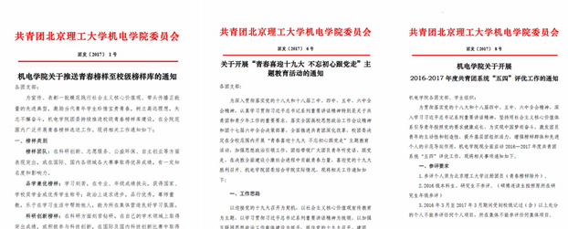 2017年3月17日、21日,机电学院团委分别组织中关村、良乡两校区全体团支书召开会议,部署“青春喜迎十九大 不忘初心跟党走”主题教育活动,两校区本硕博各年级团支部书记参会。会议就党团基本理论知识、习近平总书记系列讲话精神等进行了概要式学习;并通过对《2017年共青团工作要点》的解读,进一步为全院共青团统一思想、提高认识夯实基础。